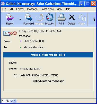 Once these steps have been completed, you can receive messages from all callers to this phone number in your FirstClass Mailbox.