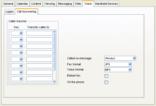 • setting your voice messaging preferences (options specific to call answering sessions and logon sessions)