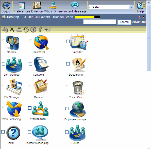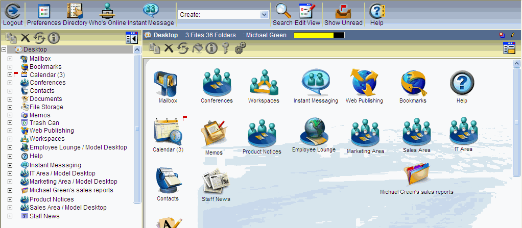 The enhanced interface more closely resembles the FirstClass client interface, providing for exact icon positioning and a framed window when in split-view mode: